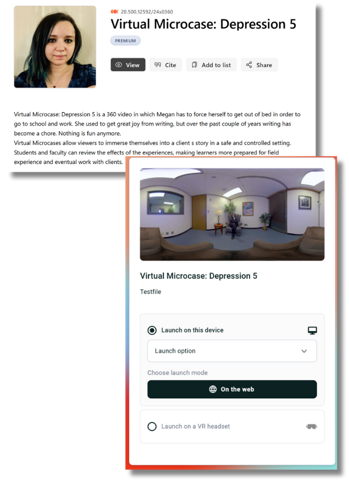 Click View to launch the VR content, which displays through our VR partner Uptale. Select Launch Options in the top left corner of the new window to configure your viewing. You can watch the video either on your desktop or using a VR headset.